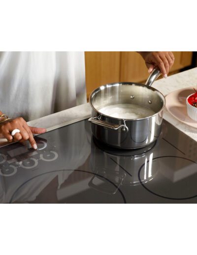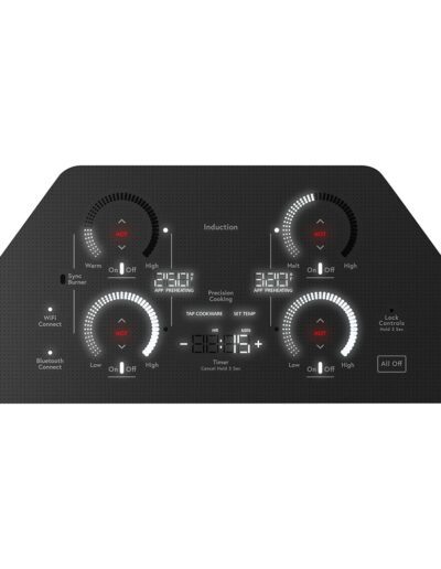 ADA Compliant: Yes | Colour: Black | Control Location: Front Centre | Control Type: Glide Touch | Cooktop Control Features: Melt Setting | Cooktop Control Features: Control Lock Capability | Cooktop Control Features: Boost (All Elements) | Cooktop Control Features: Chef Connect | Cooktop Control Features: Pan Size Sensor | Cooktop Control Features: Pan Presence Sensor | Cooktop Control Features: Sync-Burners | Cooktop Control Features: Kitchen Timer | Cooktop Type: Induction | Element – Front Left: 7″ 2500W | Element – Front Right: 11″ 3700W | Element – Rear Left: 7″ 2500W | Element – Rear Right: 6″ 1800W | Fuel Type: Electric | Heating Element “ON” Indicator Light: Yes | Hot Surface Indicators: Yes | Melt Setting: Yes | Volts/Hertz/Amps: 208/240V; 40A | Warranty: 1 Year Limited Parts & Labour | Width: 30″
