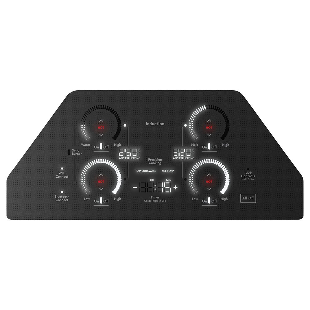 This smart cooktop features Built-in WiFi so you can monitor your burners and view power levels, precision temperature , or on/off.