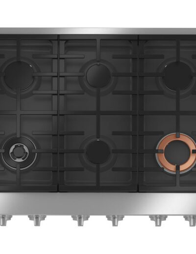ADA Compliant: Yes | Automatic Re-Ignition: Yes | Boutons lavables au lave-vaisselle: Yes | Burner – Centre Front: 12,000 BTU | Burner – Centre Rear: 12,000 BTU | Burner – Front Left: 21,000 BTU | Burner – Front Right: 10,000 BTU | Burner – Rear Left: 18,000 BTU | Burner – Rear Right: 18,000 BTU | Cleaning Type: Self-Clean | Colour: Stainless Steel | Control Location: Front Centre | Control Type: Front | Direct Electronic Ignition: Yes | Fuel Type: Gas | Grates: Continuous Heavy Cast Iron | Hot Surface Indicator Lights: 270 | LP Conversion Kit: Yes | Number of Burners: 6 | Style: Professional | Style: Professional | Warranty: 1 Year Limited Parts & Labour | Width: 36″