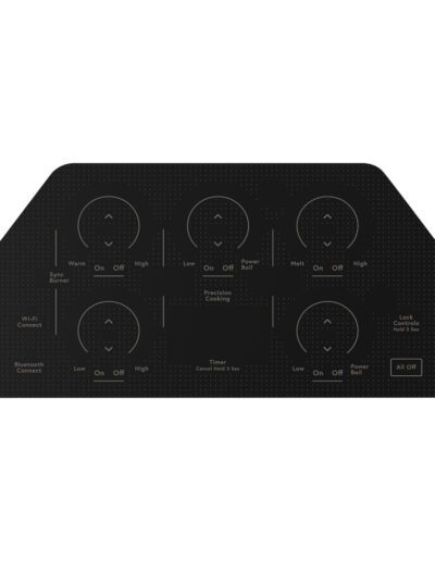 ADA Compliant: Yes | Bluetooth Connectivity: Yes | Built in cooktops: Yes | Built in cooktops: Yes | Built-in: nan | Child Lock: Yes | Colour: Black | Compatible Accessories: JXGRIDL1 | Connected Capabilities: Bluetooth | Control Location: Front Centre | Control Lock Capability: Yes | Control Type: Electronic Touch | Cooktop Type: Smoothtop Radiant | Custom Settings: Yes | Cutout Depth (in): 19.125 | Cutout Width (in): 33.875 | Element – Centre: 12″/9″/6″ 3600W Power Boil | Element – Front Left: 7″ 1500W | Element – Front Right: 9″/7″/5″ 3000W Power Boil | Element – Rear Left: 7″ 1500W (Keep Warm) | Element – Rear Right: 6″ 1200W (Melt) | Frameless: Yes | Fuel Type: Electric | Heating Element “ON” Indicator Light: Yes | Hot Surface Indicator Lights: Yes | Melt Setting: Yes | Net Weight (lbs): 44 | Style: Design | Sync Burners Capability: Yes | Timer: Yes | Volts/Hertz/Amps: 208-240 V / 60 Hz | Width: 36” | Wifi Connect: Yes
