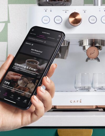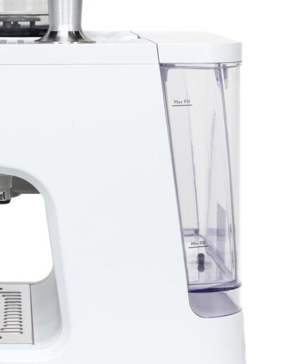 Installation: Free_standing | 1 and 2 cup filters coffee maker: 2 layers_SUS304 | Adjustable Grinder: 16 Settings | Alimentation: 120V ; 60 Hz ; 1235-1470W | Auto Shutoff: Yes | Back Air Clearances: 2 in | Bean Capacity (Hopper): 275g = 10 Oz | Boiler Type: Thermoblock Heating | Coffee Dispensing Amount: 2 cups: 45-90ml | Coffee Dispensing Amount: Default Volume | Coffee Dispensing Amount: 1cup:15-50ml | Colour: Matte White | Control Features: LED Panel with Cap touch keys, One touch keys for Espresso, Americano, My Cup, Hot Water and Steam | De-Scaling: Yes | Electrostatic System to prevent Powder splashing: Ion Generator | External Drip Tray Capacity: 1.0 L | Grinder Type: Easy to Clean | Grinder Type: Burr, precision, SS | Heating Element: 230V/1300W(+5% -10%) | Hot Water Function: Yes | Integrated Grind Systems: Yes | LED Alerts: Grinder | LED Alerts: Clean | LED Alerts: Add water | Memory Settings: Water memory and grind amount for single grind amount, Additional settings available (on App) | Preheating Time: <=80 seconds | Pump Pressure: 20 Bar | Removable Drip Tray: Yes | Side Air Clearance: Right 2", Left 6", Front 10" | Steam Function: Yes | Tamper Storage: Place on top of the unit | Temperature Control: Double PID Control | Type: Countertop - Indoor | Volumetric Control: Yes | Warranty: 1 year | Water Reservoir: Removable | Water Reservoir: 2.8L | WiFi Connect: Yes