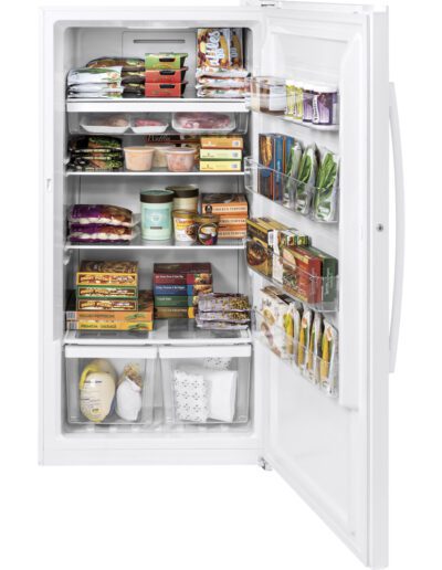 Bulk Storage Baskets: (3) Lift-Out / Sliding | Cabinet Shelves: 4 (2 Adj.) | Capacity: 12-18 cu.ft. | Colour: White | Defrost Type: Frost Free | Door Shelves: 4 | Energuide Rating: 441 kWh/yr | Energy Star: Yes | Interior Lights: Yes | Lock: Yes | Style: Upright | Temperature Control Type: Electronic | Type: Freestanding | Volts; Hertz; Amps: 115V; 60Hz; 20A | Warranty: 1 Year Limited Parts & Labour