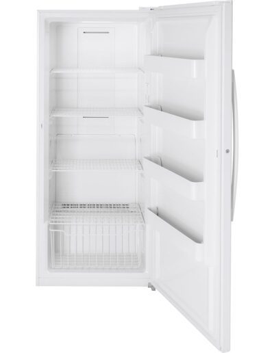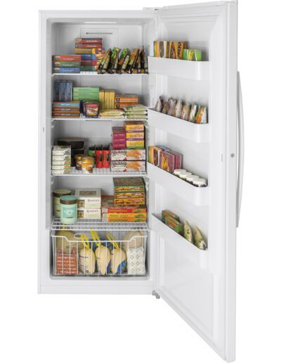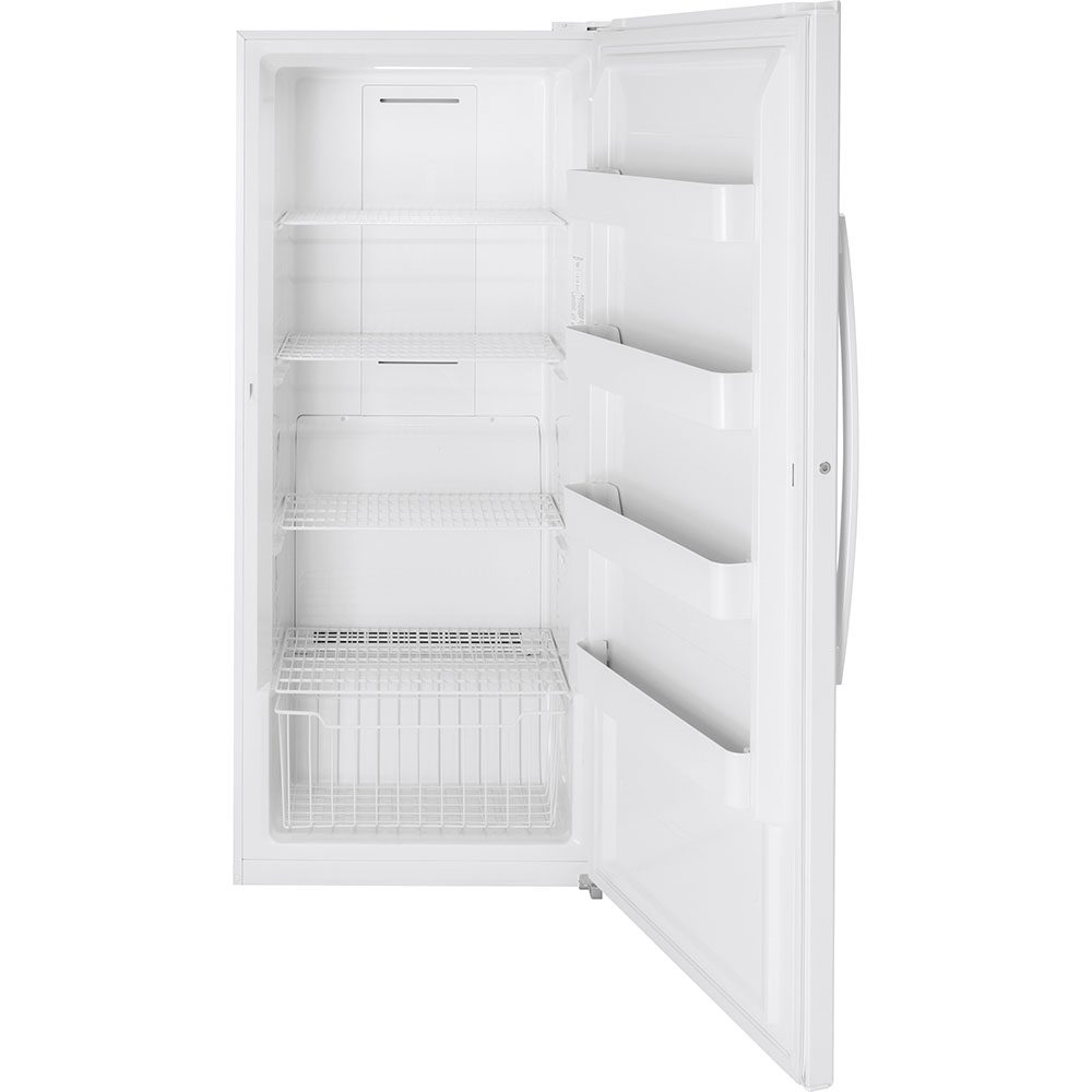 Cabinet Shelves: 4 (2 Adj.) | Capacity: 18-24 cu.ft. | Colour: White | Defrost Type: Frost Free | Defrost Water Drain: No | Door Shelves: 4 | Energy Star: No | Interior Lights: Yes | Lock: Yes | Style: Upright | Temperature Control Type: Electronic | Type: Freestanding | Volts; Hertz; Amps: 115V; 60Hz; 20A | Warranty: 1 Year Limited Parts & Labour | Water Filtration: No