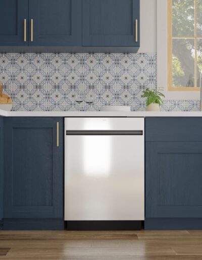 Colour: Fingerprint Resistant Stainless Steel | Control Location: Top | Delay Start: 1-12 hr. | Dishwasher Cycles: Normal Wash | Dishwasher Cycles: Heavy Wash | Dishwasher Cycles: Light Wash | Dishwasher Cycles: Auto Wash | Dishwasher Cycles: 1 Hour Wash | Dishwasher Cycles: Rinse Only | Dishwasher Cycles: Glass | Dishwasher Cycles: Eco Wash | Dishwasher Options: Steam + Sanitize | Dishwasher Options: Rinse Aid with Indicator and Adjustment | Dishwasher Options: Child Lock | End-of-Cycle Signal: Yes | Energy Star: Yes | Handle: Pocket | Noise Levels: 47 dBA | NSF Certified: Yes | Number of Place Settings: 15 Services | Rack Features: Upper Rack – Adjustable | Sensor: Clean Sensor | Wash System: 3 Level | Wash System Features: Piranha Hard Food Disposer