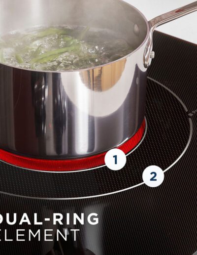 3100W Dual-ring Power Boil Element, Flexible cooktop, Melt Setting, Keep Warm setting, Easy-clean surface, Control lock, Hot surface indicator lights