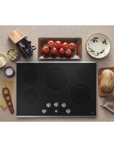 ADA Compliant: Yes | Colour: Stainless Steel | Control Knobs: Stainless Steel Appearance | Control Location: Front Centre | Control Type: Knobs | Cooktop Control Features: Melt Setting | Cooktop Type: Smoothtop Radiant | Cutout Depth (in): 19.63 | Cutout Width (in): 28.5 | Element – Centre: 9″/6″ 3100W Dual-Ring Power Boil | Element – Front Left: 7″ 1500W | Element – Front Right: 8″/5″ 2200W Dual-Ring | Element – Rear Left: 7″ 1500W (Keep Warm) | Element – Rear Right: 6″ 1200W (Melt) | Fuel Type: Electric | Heating Element “ON” Indicator Light: Yes | Hot Surface Indicators: Yes | Melt Setting: Yes | Optional Accessory: JXGRIDL1 | Optional Accessory: JXTR32B | Timer: Yes | Volts/Hertz/Amps: 208/240V; 40A | Warranty: 1 Year Limited Parts & Labour | Width: 30″