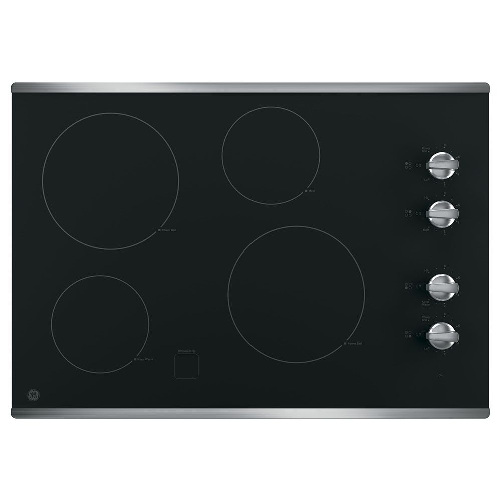 Boutons lavables au lave-vaisselle: Yes | Burner Indicator Light: Yes | Colour: Stainless Steel on Black | Control Knobs: Stainless Steel Appearance | Control Location: Right Side | Control Type: Knobs | Cooktop Type: 4 Ribbon | Element – Front Left: 6″ 1200W | Element – Front Right: 8″ 2500W Power Boil | Element – Rear Left: 8″ 2500W Power Boil | Element – Rear Right: 6″ 1200W | Frame Colour / Material: Stainless Steel | Frameless: Yes | Fuel Type: Electric | Hot Surface Indicators: Yes | Keep warm setting cooktops: Yes | Melt Setting: Yes | Volts/Hertz/Amps: 208-240 V / 60 Hz | Warranty: 1 Year Limited Parts & Labour