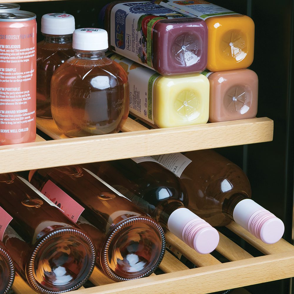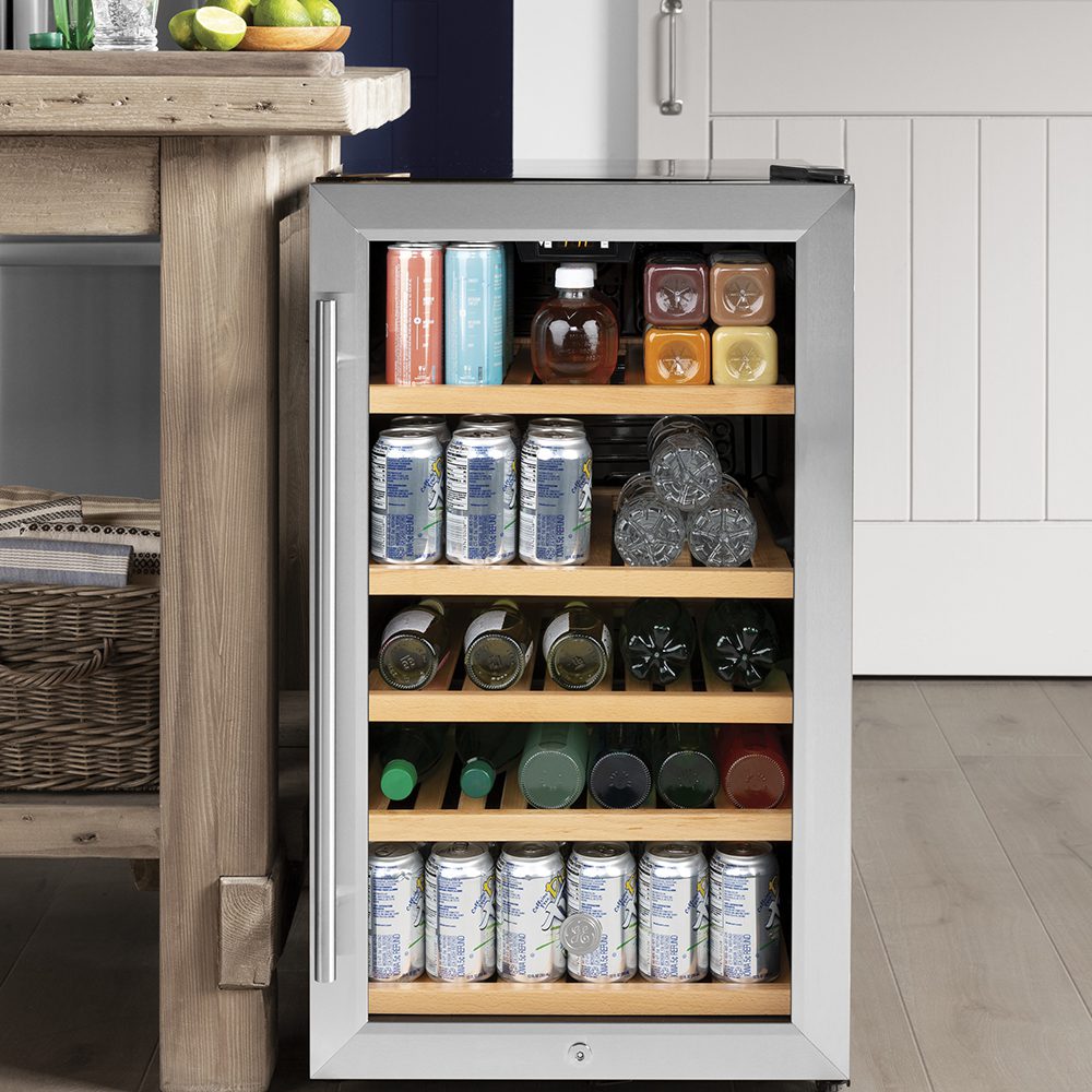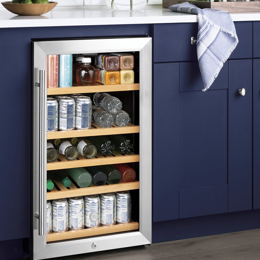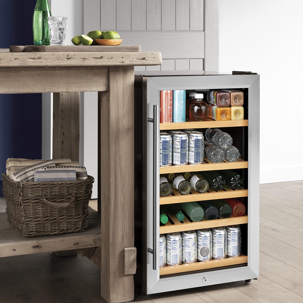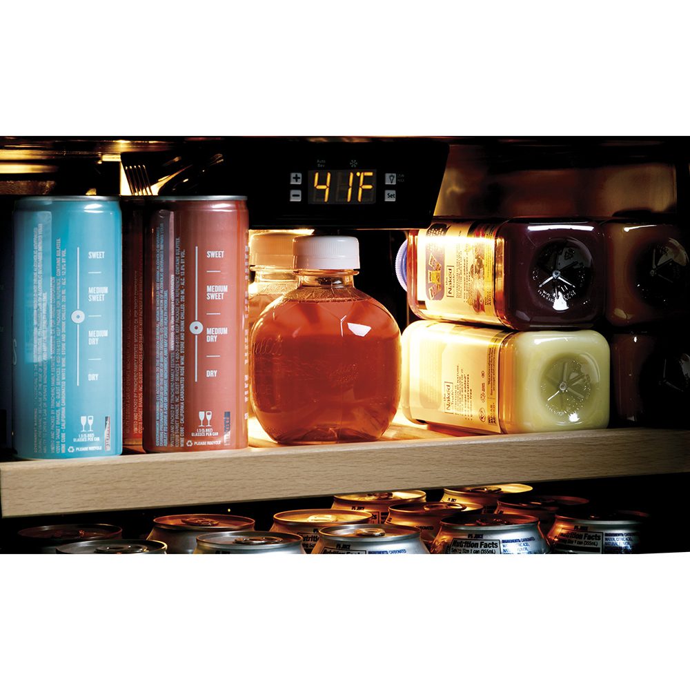 125 Can/31 Bottle Capacity. Stainless Steel Door with Large Glass Window. 5 Genuine Oak Shelves. Electronic Controls. Interior Lighting. Built-In Capable. ADA Compliant.