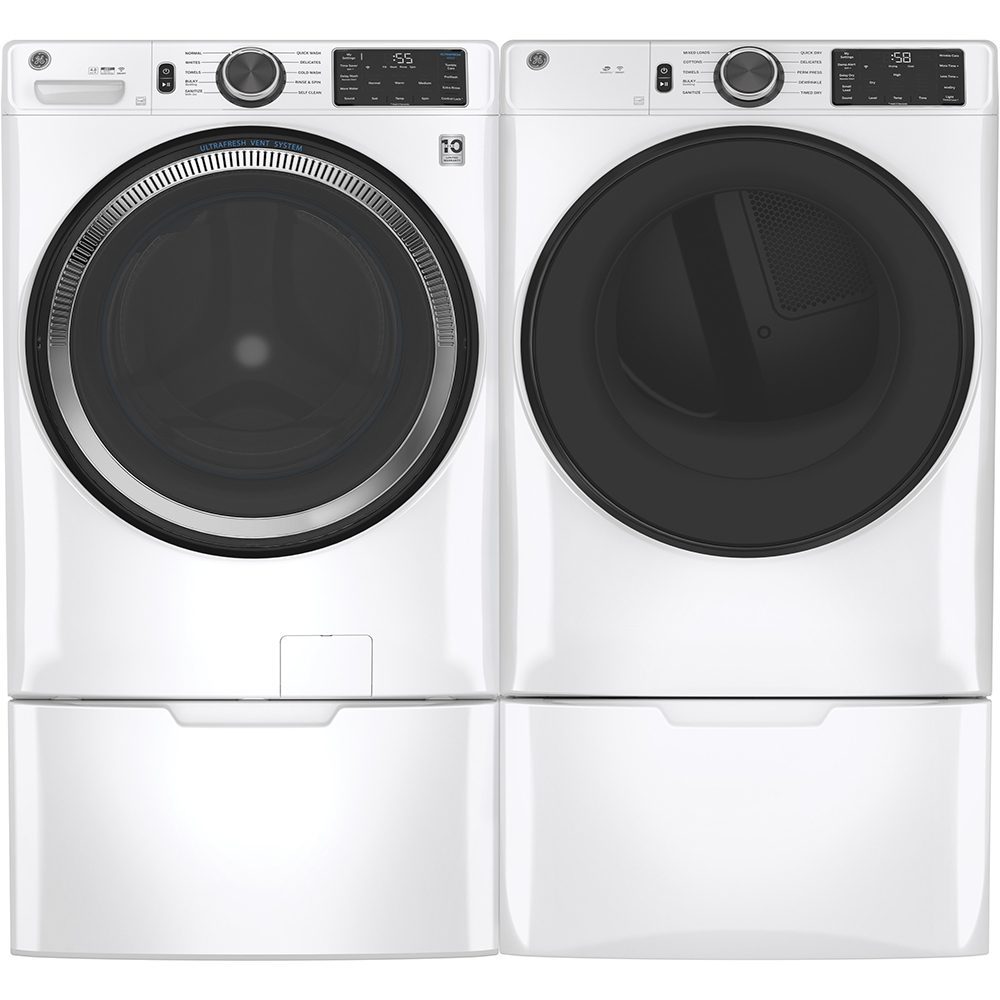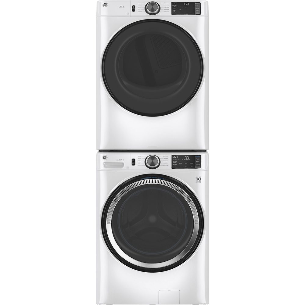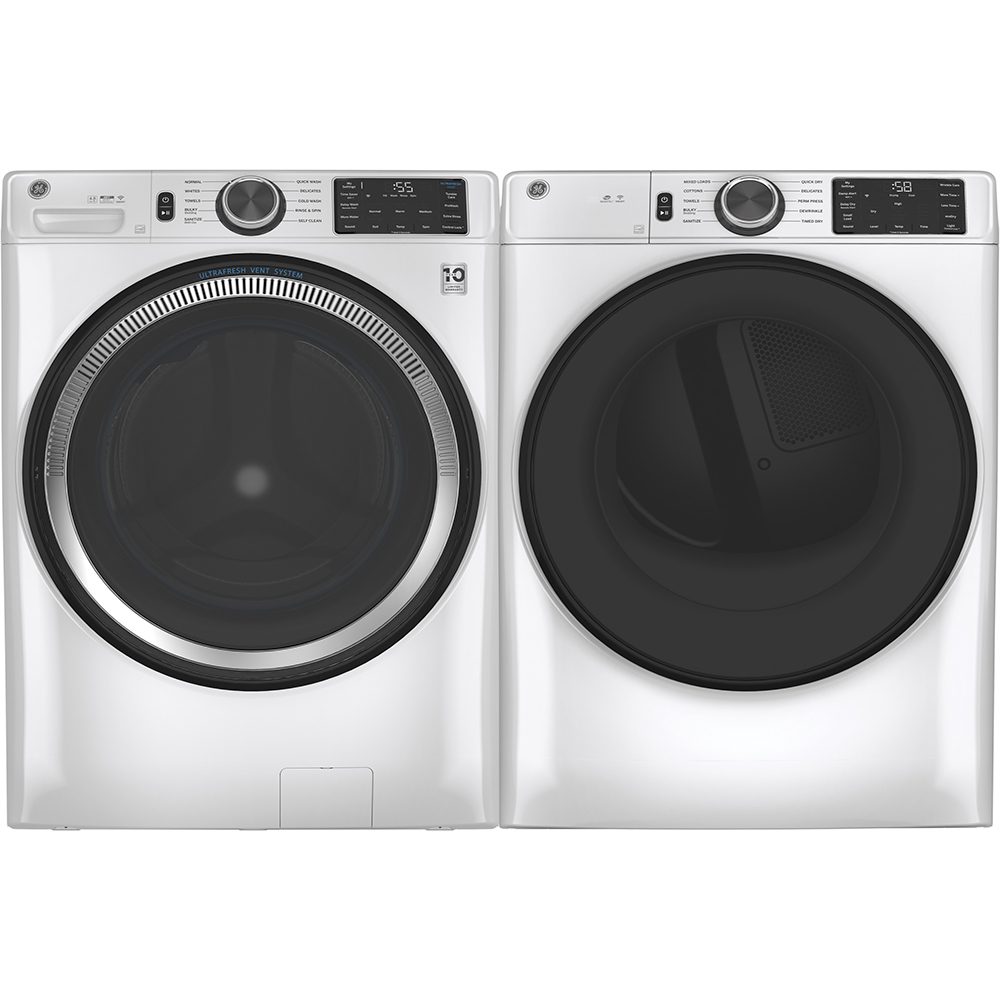 Child Lock: Yes | Clean Lint Filter Reminder Light: Yes | Colour: White | Control Type: Rotary-Electrical | Damp Alert: Yes | Depth with Door Open 90° (in.): 54.5 | Dry Levels: More Dry / Dry / Less Dry / Damp | Dryer Cycles: Dewrinkle | Dryer Options/Settings: End-of-Cycle Signal | Energy Star: Yes | Exhaust Options: 4-Way (Rear; Right; Left & Bottom) | Fuel Type: Gas | Heat Selections: 5 | Interior Light: Yes | LED Cycle Countdown: Yes | LED Display: Yes | Lint Filter: Yes | Long Vent: Yes | Matching Washer: GFW550SMNWW | Moisture Sensor: Yes | Remote Start: Yes | Reversible Door: Yes | Style: Front Load | Vent Sensing: Yes | Warranty: 1 Year Parts & Labour | Width: 28″ or more | Wifi Enabled: Yes | Wrinkle Care: Yes
