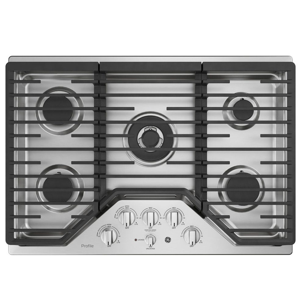 ADA Compliant: Yes | Child Lock: Yes | Colour: Stainless Steel | Control Location: Front Centre | Control Type: Backlit Knobs | Cooktop Type: Gas | Fuel Type: Gas | Grates: 3 Heavy Cast Iron | LP Conversion Kit: Yes | Number of Burners: 5 | Precise Simmer Burner: Yes | Style: Electronic Pilotless Ignition | Volts/Hertz/Amps: 120V; 60Hz; 5A | Width: 30″