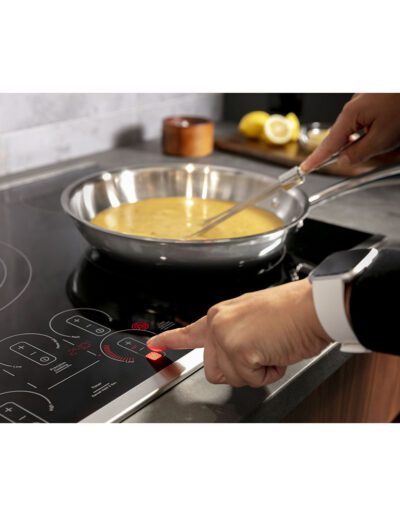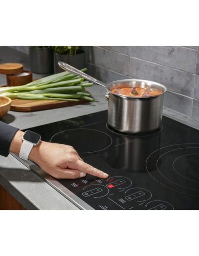 ADA Compliant: Yes | Colour: Black | Control Location: Front Centre | Control Type: Glide Touch | Cooktop Control Features: Melt Setting | Cooktop Control Features: Control Lock Capability | Cooktop Control Features: Kitchen Timer | Cooktop Type: Smoothtop Radiant | Cutout Depth (in): 19.63 | Cutout Width (in): 28.5 | Element – Front Left: 7″ 1500W | Element – Front Right: 9″/6″ 3100W Dual-Ring Power Boil | Element – Rear Left: 7″ 1500W (Keep Warm) | Element – Rear Right: 6″ 1200W (Melt) | Fuel Type: Electric | Heating Element “ON” Indicator Light: Yes | Hot Surface Indicators: Yes | Melt Setting: Yes | Optional Accessory: JXGRIDL1 | Optional Accessory: JXTR32B | Volts/Hertz/Amps: 208V/30A; 240 V/40A | Warranty: 1 Year Limited Parts & Labour | Width: 30″ | Wifi Connect: Yes | WiFi Enabled Features: Bluetooth Pairing – Chef Connect with Hoods/OTRs and Hestan Cue Pans (HMI) | WiFi Enabled Features: Guided Cooking with Hestan Cue Pans (App) | WiFi Enabled Features: Interfaces with SmartHQ App | WiFi Enabled Features: Precision Cooking with Hestan Cue Pans (HMI and App)