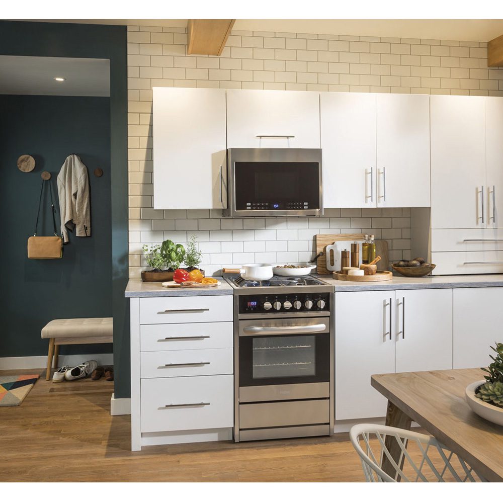 Child Lock: Yes | Colour: Stainless Steel | Control Type: Digital | Cooking Technology: Microwave Cooking | Cooktop Lighting: Yes | Defrost Type: Programmable | Delay Start: Yes | Hidden Vent: Yes | Interior Oven Light: Yes | Microwave Cooking Type: Single Distribution | Power Levels: 10 | Program Option: Bacon | Program Option: Frozen Breakfast | Program Option: Popcorn | Program Option: Pizza | Program Option: Potatoes | Program Option: Vegetables | Program Option: Reheat | Program Option: Rice | Program Option: Turntable On/Off | Status Recall: Yes | Style: Over-the-Range | Timer: Yes | Turntable Size (in.): 13 1/2 | Warranty: 1_year_parts_labour_carry_In