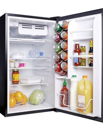 Beverage Rack: Yes | Capacity: 4.5 cu. ft. | Colour: Black | Defrost Type: Manual | Door Storage: 1 Full Width and 2 Half Width Shelves | Door Swing: Right Hand – (Hinge on right) | Energuide Rating: 253 kWh/yr | Features: Adjustable Thermostat | Gallon Storage: Yes | Ice N’ Easy Trays: Yes | Interior Lights: Yes | Reversible Doors: Yes | Shelves: 3 Glass | Volts / Hertz: 115 V / 60 Hz | Warranty: 5 Year Limited Parts and Labour, Sealed System