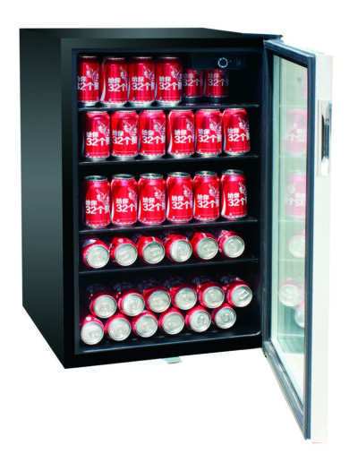 Colour: Glass + Stainless Steel | Control Type: Knobs | Installation Options: Free-Standing | Interior Lights: Yes | Lock: Yes | Number of Bottles: 150 Cans | Reversible Doors: Reversible Doors | Slide-Out Shelves: Yes | Temperature Display: No | Volts / Hertz: 115 V / 60 Hz | Warranty: 1 Year Limited Parts & Labour | Wine Racks: Yes