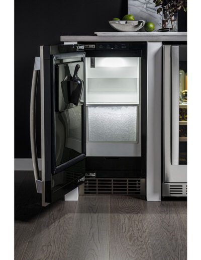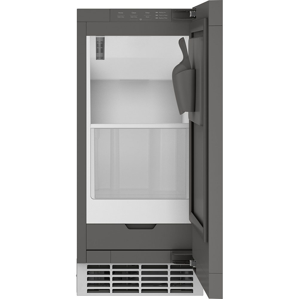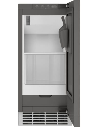 Colour: Panel Ready | Control Type: Electronic | Ice Scoop: Yes | Ice Type: Nugget ice | Interior Lights: Yes | Reversible Door: Yes | Storage Bin Capacity (lb): 26 | Type of Installation: Built-In or Free-Standing | Volts; Hertz; Amps: 110V; 60Hz; 6.5A | Warranty: 1 Year Limited Parts & Labour
