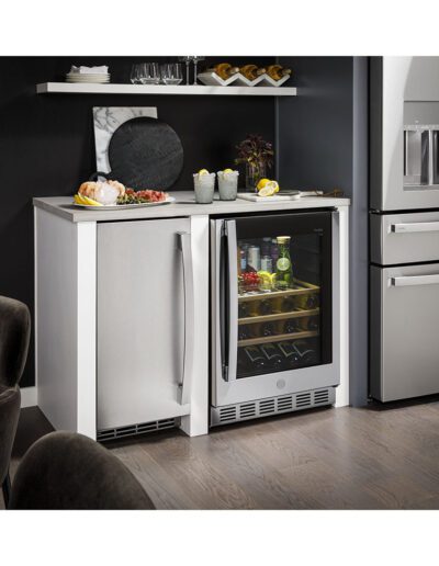 Built-In WiFi, Powered by SmartHQ App, Integrated Water Filtration, Clear Storage Bin, LED Interior Lighting, Reversible Door with Articulating Hinges, Panel Ready (Stainless Steel requires panel kit and Minimalist or Statement handle kit), Built-In or Freestanding Capable, Produces 60 Pounds of Ice Per Day