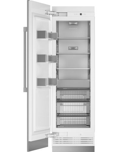 Cabinet Shelves: 1 Fixed, 3 Adjustable | Cabinet Shelves: Edge to Edge Glass Shelves | Capacity: 12.5 cu.ft | Colour: Panel Ready | Configuration: Full Door | Controls and Display: Upfront Capacitance Touch Controls w/ Digital LCD Readout | Defrost Type: Automatic | Door Colour: Door Panels Required / Sold separately | Door Handle Style: Custom Handle Required | Door Shelves: 3 Bins; Adjustable Glass and Metal Bins | Door Stops: 90 Degree and 115 Degree | Door Swing: Shipped with Left-Hand Door Opening | Energuide Rating: 513 kwhyr | Energy Star: Yes | Filter Location: Top right of product behind access panel | Freezer Baskets: 3 Silver Wire w/ Full Extension Slides | Icemaker: Factory-Installed | Integrated Wi-Fi Connectivity & Control: Change Temp Setpoint | Integrated Wi-Fi Connectivity & Control: Display Temp Setpoint | Integrated Wi-Fi Connectivity & Control: Door Alarm Alert | Integrated Wi-Fi Connectivity & Control: Night Time Snack Mode | Integrated Wi-Fi Connectivity & Control: Sabbath Status (On/Off) | Integrated Wi-Fi Connectivity & Control: Water Filter Status | Interior Lights: Yes | Levelling System: 4-Point Front Adjustable | Product Type: All freezer | Sealed System Design: Auto Defrost | Warranty: Limited 12-year sealed refrigerating system, parts; Limited 2-year entire appliance, parts; Limited 2-year entire appliance, labour; Limited 5-year compressor, labour | Water Filtration: XWF or XWFE | Width: 24″ | WiFi Connect: Built-in