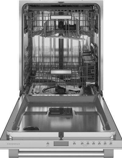 Colour: Stainless Steel | Control Location: Top | Control Type: Fully Integrated Electronic | Delay Start: 1-12 hr. | Design Style: Statement Collection | Dishwasher Cycles: Intense | Dishwasher Drying Features: Fan Assist Dry | Dishwasher Options: Automatic Temperature Control | Dishwasher Options: Child Lock | Dishwasher Options: Deep Clean Silverware Jets | Dishwasher Options: Heated Dry | Dishwasher Options: Presoak | Dishwasher Options: Last Cycle Memory | Dishwasher Options: Bottle Wash Jets | Dishwasher Options: Rinse Aid with Indicator and Adjustment | Dishwasher Options: Sanitize (NSF) | Dishwasher Options: Temp Boost | Dishwasher Options: Wash Zones | End-of-Cycle Signal: Yes | Energy Star: Yes | Features: Hidden Heater | Handle: Statement Collection | Interior LED Light: Yes | Noise Levels: 39 dBA | Number of Cycles: 7 | Number of Place Settings: 16 Place Settings | Rack Features: Lower Rack – Fold Down Tines | Rack Features: Stem Safe | Rack Features: Upper Rack – Adjustable | Rack Features: Third Rack | Rack Features: Utility Shelf | Sensor: Clean Sensor | Style: Built-in | Tub and Door Liner: Stainless Steel | Volts / Hertz: 120 v / 60 Hz | Warranty: 1 Year Parts & Labour | Wash Arm – Lower Level: Yes | Wash Arm – Mid-Level: Yes | Wash System: 900 Series | Width: 24″ | Wifi Connect: Yes