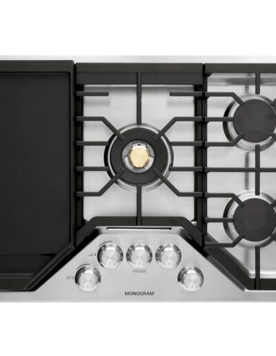 Automatic Re-Ignition: Yes | Burner – Centre: 20 | Burner – Front Right: 12 | Burner – Rear Left: 10 | Colour: Stainless Steel | Control Location: Front Centre | Control Type: Backlit Knobs | Cooktop Type: Gas | Fuel Type: Gas | Grates: 3 Heavy Cast Iron | Griddle: Yes | LP Conversion Kit: Yes | Number of Burners: 5 | Precise Simmer Burner: Yes | Warranty: 2 Year Limited Parts & Labour | Width: 30″