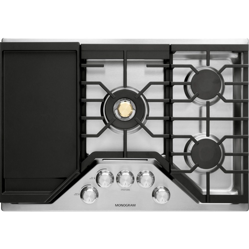 Dual-Flame Stacked Burners, Tri-Ring Burner, Precision Knobs, Continuous Grates, Heavy-Duty, Cast-Iron Griddle