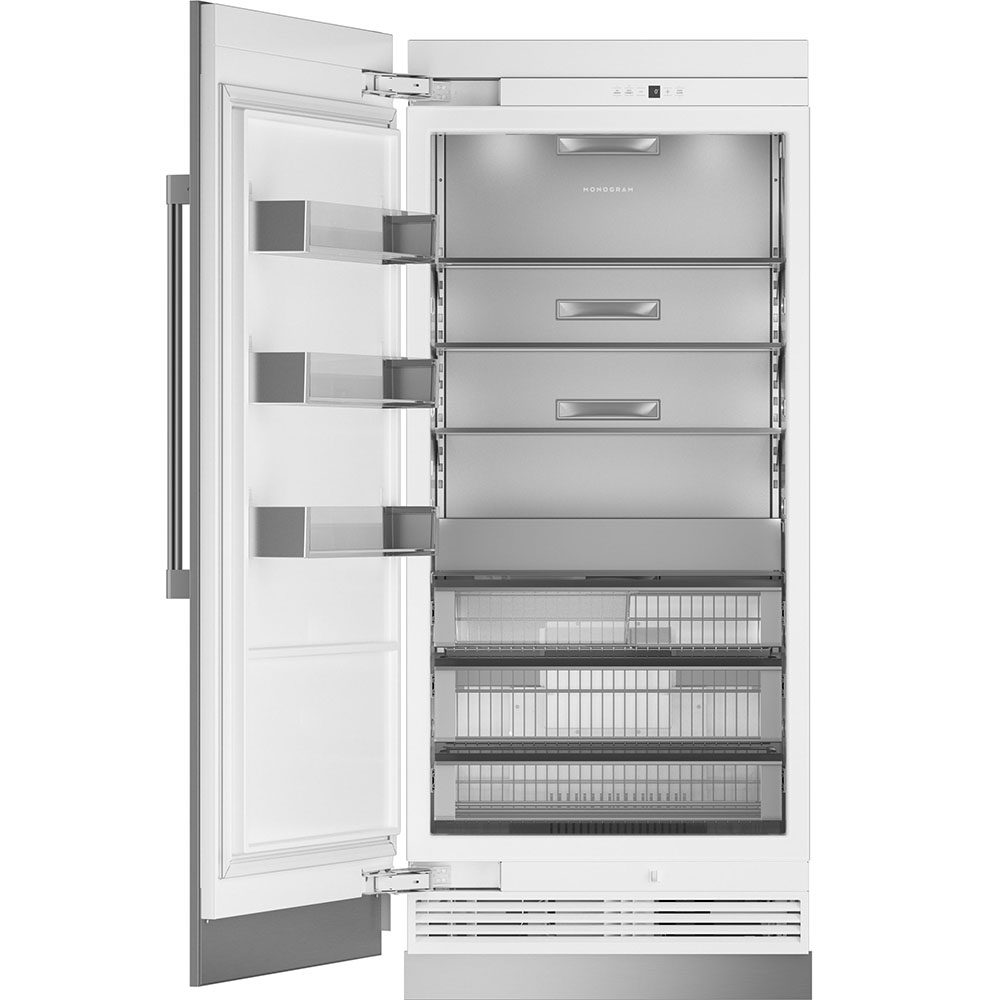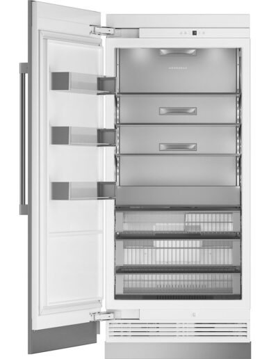Cabinet Shelves: 1 Fixed, 3 Adjustable | Cabinet Shelves: Hydrophobic-Coated Spill-Resistant | Capacity: 21.2 cu. ft. | Colour: Panel Ready | Configuration: Full Door | Controls and Display: Upfront Capacitance Touch Controls w/ Digital LCD Readout | Defrost Type: Automatic | Door Colour: Door Panels Required / Sold separately | Door Handle Style: Custom Handle Required | Door Shelves: 3 Bins with Rubber Matt Inserts; Adjustable Glass and Metal Bins | Door Stops: 90 Degree and 115 Degree | Door Swing: Shipped with Left-Hand Door Opening | Freezer Baskets: 3 w/ Rubber Matt Inserts | Freezer Baskets: 3 Silver Wire w/ Full Extension Slides | Icemaker: Factory-Installed | Integrated Wi-Fi Connectivity & Control: Door Alarm Alert | Integrated Wi-Fi Connectivity & Control: Change Temp Setpoint | Integrated Wi-Fi Connectivity & Control: Water Filter Status | Integrated Wi-Fi Connectivity & Control: Sabbath Status (On/Off) | Integrated Wi-Fi Connectivity & Control: Night Time Snack Mode | Integrated Wi-Fi Connectivity & Control: Display Temp Setpoint | Interior Lights: Yes | Leveling System: 4 Point Front Adjustable | Reversible Door: 1 | Sealed System Design: Auto Defrost | Type: Built-In | Warranty: Limited 12-year sealed refrigerating system, parts | Warranty: 2 Year Parts & Labour | Warranty: 5-year Limited Compressor, Labour | Width: 36” | WiFi Connect: Built-in